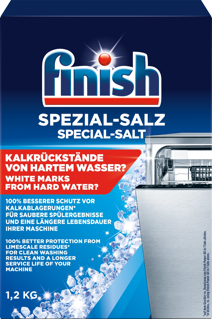 Muối rửa bát Finish được thiết kế đặc biệt để ngăn ngừa cặn vôi và khoáng chất tích tụ trong máy rửa bát, bảo vệ chén đĩa và nâng cao hiệu quả làm sạch đến 100%. Với độ tinh khiết 99% và chất lượng cao cấp, muối Finish làm sạch nguồn nước hiệu quả, loại bỏ hoàn toàn vấn đề cặn vôi so với các phương pháp làm mềm nước khác. Sử dụng thường xuyên giúp tăng hiệu quả tẩy rửa, ngăn ngừa cặn bám, cho chén đĩa sạch bóng hơn (so với chỉ dùng nước rửa chén).